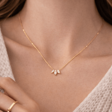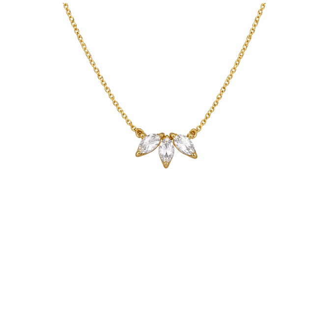 Inspired by icy landscapes and crisp Scandinavian elegance, this gold vermeil necklace features three marquise-cut white cubic zirconia (5 × 2.5 mm), delicately arranged to reflect light with subtle brilliance.